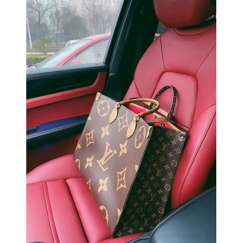 Fashioned from Monogram Giant canvas, the OnTheGo GM tote bag is as striking as it is practical. A Monogram Reverse pattern on the sides and handles creates a stylish contrast in color and scale. With its generous capacity, shoulder straps and iconic Toron top handles, this versatile GM model is an ideal bag for everyday wear.